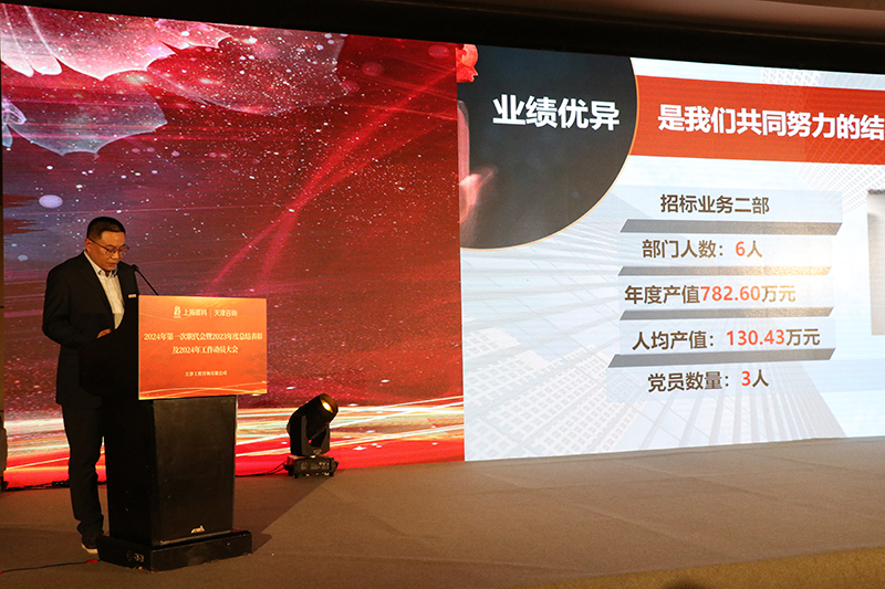 2月1日,天津咨詢2023年度總結表彰暨2024年工作動員大會在倒計時中正式開始。上海建科集團黨委委員、副總裁、天津咨詢董事長何錫興,天津國興資本黨委委員、副總經理、天津咨詢董事楊洪來,天津咨詢部分董事和老領導,公司兩級領導班子成員、中層干部、全體職工代表共同出席會議,會議同時進行視頻直播。