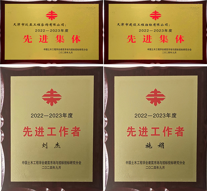 日前,在中國土木工程學會建筑市場與招標投標研究分會舉辦的2022-2023年度評選中,天津咨詢所屬泛亞咨詢、建設招標兩家子公司分別榮獲“先進集體”榮譽稱號,泛亞咨詢劉杰、建設招標施娟分別榮獲“先進工作者”榮譽稱號。
